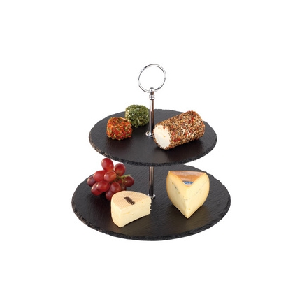 APS Plat de service ardoise naturelle, 2 étages, anthracite épaisseur du matériau : 6-9 mm, rebords brisés, surface brillante étanche, armature en métal chromé, patins anti- rayures sous la base, hauteur: 240 mm, diamètre: 250/200 mm (989)