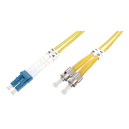 DIGITUS Câble Patch à fibres optiques LC-Duplex – 2 x ST OS2, 3,0 m monomode, câble duplex, 09/125 microns, férule en céramique, type de câble: I-VH 2E, couleur de câble: jaune (DK-2931-03)