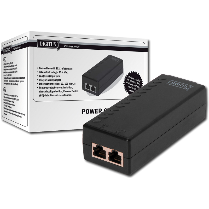 • connexions: 1 x port d’entrée RJ45 LAN, 1 x port de sortie RJ45 PoE