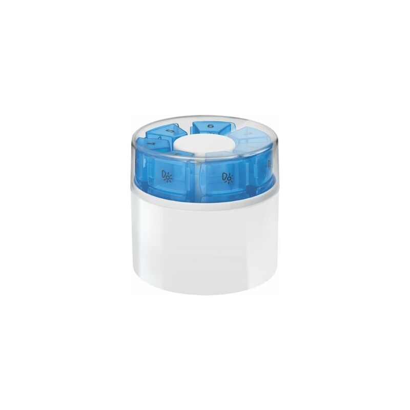 7 compartiments séparés avec impression des jours et moments de la journée, jours séparables par un système d’insertion, coupe-comprimés intégré pour diviser les comprimés couleur: blanc / bleu (P-10000)
