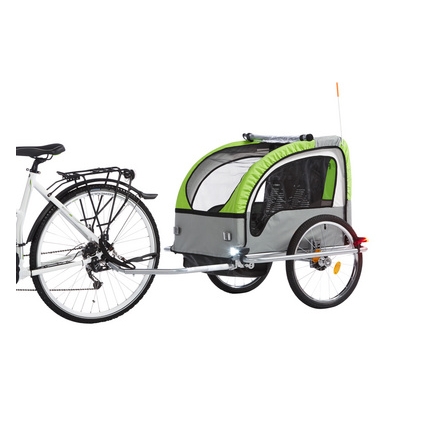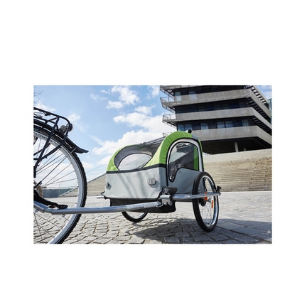 La remorque à vélo pour enfants Komfort de FISCHER est le compagnon idéal pour les sorties en famille à vélo. Avec son design noir et vert moderne, cette remorque offre non seulement un look attrayant, mais également une multitude de fonctionnalités pratiques.