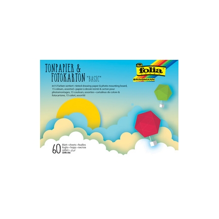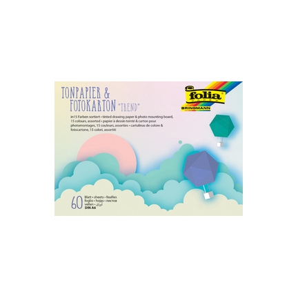 folia Bloc papier dessin teinté/carton bricolage TREND, A6 60 feuilles, 30 papier teinté, 30 carton bricolage, assorti en 15 couleurs, bloc lié en tête (6603)