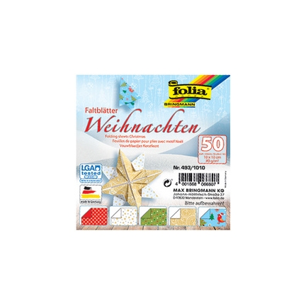 folia Feuilles de papier pour pliage “Noel”, 100 x 100 mm 80 g/m2, 50 feuilles, 5 motifs de Noel différents, face arrière imprimée unie (493/1010)