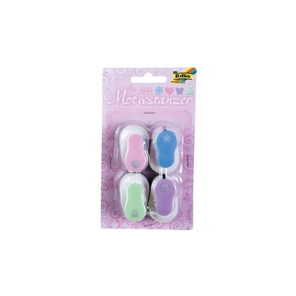 folia Kit de perforateurs à motif “MINI” toute l’année,kit 1 set composé de 4 perforateurs à motif assorti dans les motifs: fleur, coeur, papillon, ourson, diamètre du motif: 8 mm, boîtier en plastique, poinçon en métal, avec réservoir collecteur (7219)