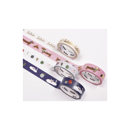 folia Ruban adhésif décoratif Washi-Tape Noël FALALA, set 4 motifs de Noël: teckel, boules de Noël, Falala, chats, ruban adhésif en papier, 2 rouleaux de 15 mm x 5 m, 2 rouleaux de 10 mm x 5 m, se déchire à la main contenu : 4 rouleaux (26450)