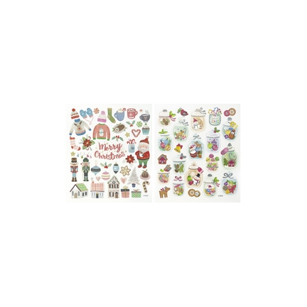 folia Stickers de Noël Charming Christmas III stickers en papier dans des motifs de Noël, adhésif, en partie pailletté, format de la planche : 150 x 170 mm contenu : 2 planches (18216)