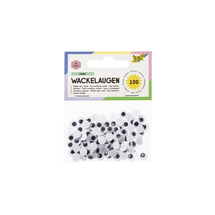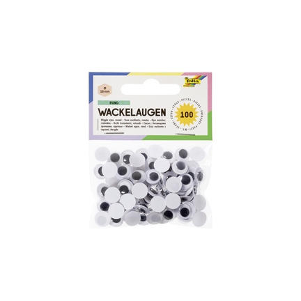 folia Yeux mobiles, rond, 12 mm, non autocollant diamètre : 12 mm, couleur : blanc, pupille mobile contenu : 100 pièces (750012)