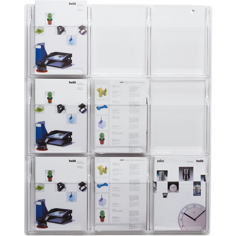 Le porte-brochures mural “the clearly” de helit est un choix idéal pour organiser et afficher vos brochures de manière élégante et pratique. Fabriqué en matériau transparent de haute qualité, ce porte-brochures ajoute une touche de modernité à n’importe quel espace.