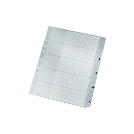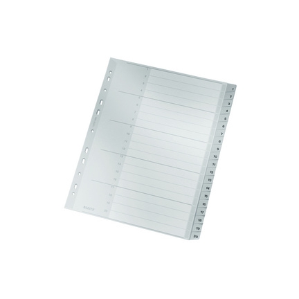 LEITZ Intercalaires en plastique, numéroté, format A4 extra large, 1-20, gris, 20 touches, en PP, 0,12 mm, avec une couverture personnalisable en carton (250 g/m2), onglets imprimés, modèle Premium, perforation Euro, dimensions: (L)238 x (H)297 mm (1284-0