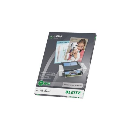LEITZ Pochette de plastification iLAM, A3, brillant 250 microns, 2 x 125 microns, Unique Direction Technologie: flèches sur la pochette indiquent la direction d’insertion & disparaissent après la plastification, éthylène-acétate de vinyle (EVA), contenu: