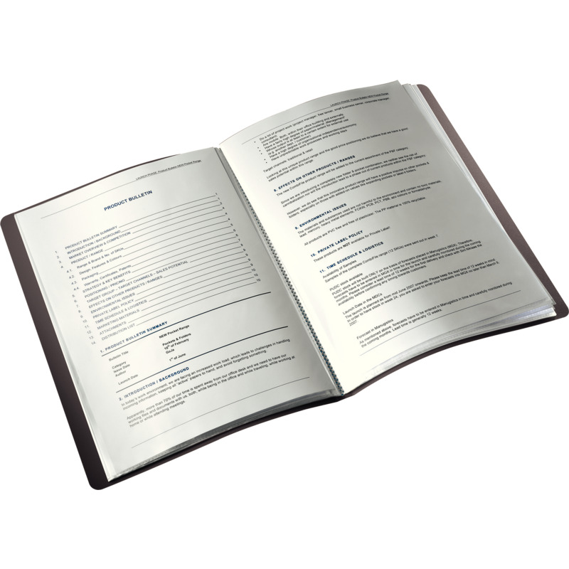 • mit fest eingebundenen, dokumentenechten PP-Karsichthüllen