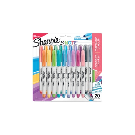 Sharpie Marqueur créatif S-NOTE, carte blister de 4 pointe biseautée 2en1, largeur de tracé: env. 2,0 à 15,0 mm, couleurs douces non fluorescentes, l’encre ne traverse pas le papier, sans odeur, capuchon dans la couleur du tracé contenu : 4 pièces (213823