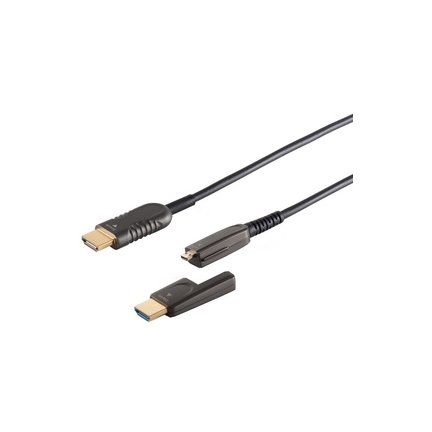 shiverpeaks BASIC-S Set de câble d’installation AOC-HDMI 4K, 15 m, HDMI A mâle – HDMI D mâle, adaptateur HDMI D mâle sur HDMI A femelle, câble optique hybride, transmet des multimédia sans perte, matériau du connecteur: alliage de zinc, plaqué or, surface